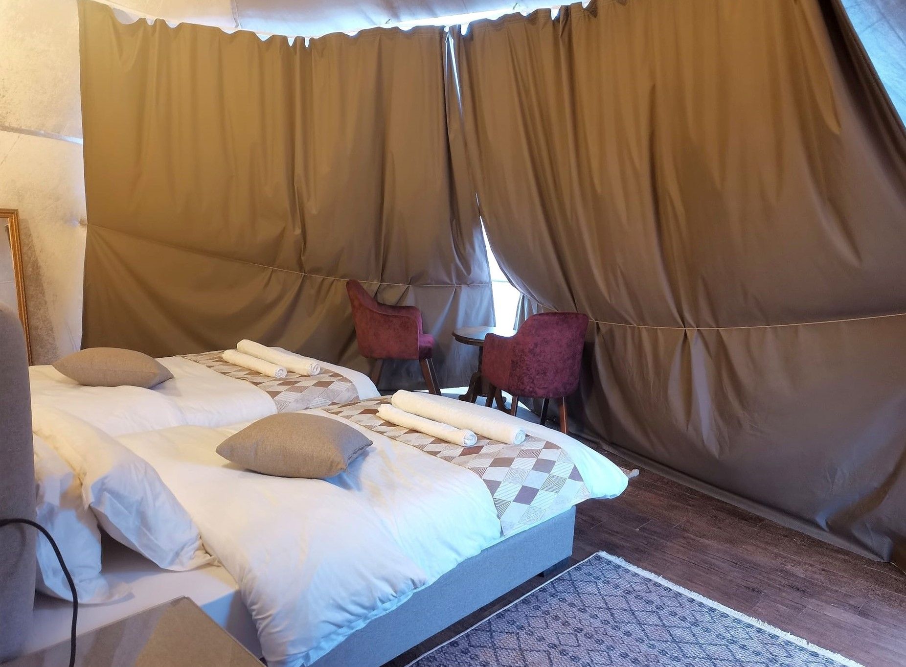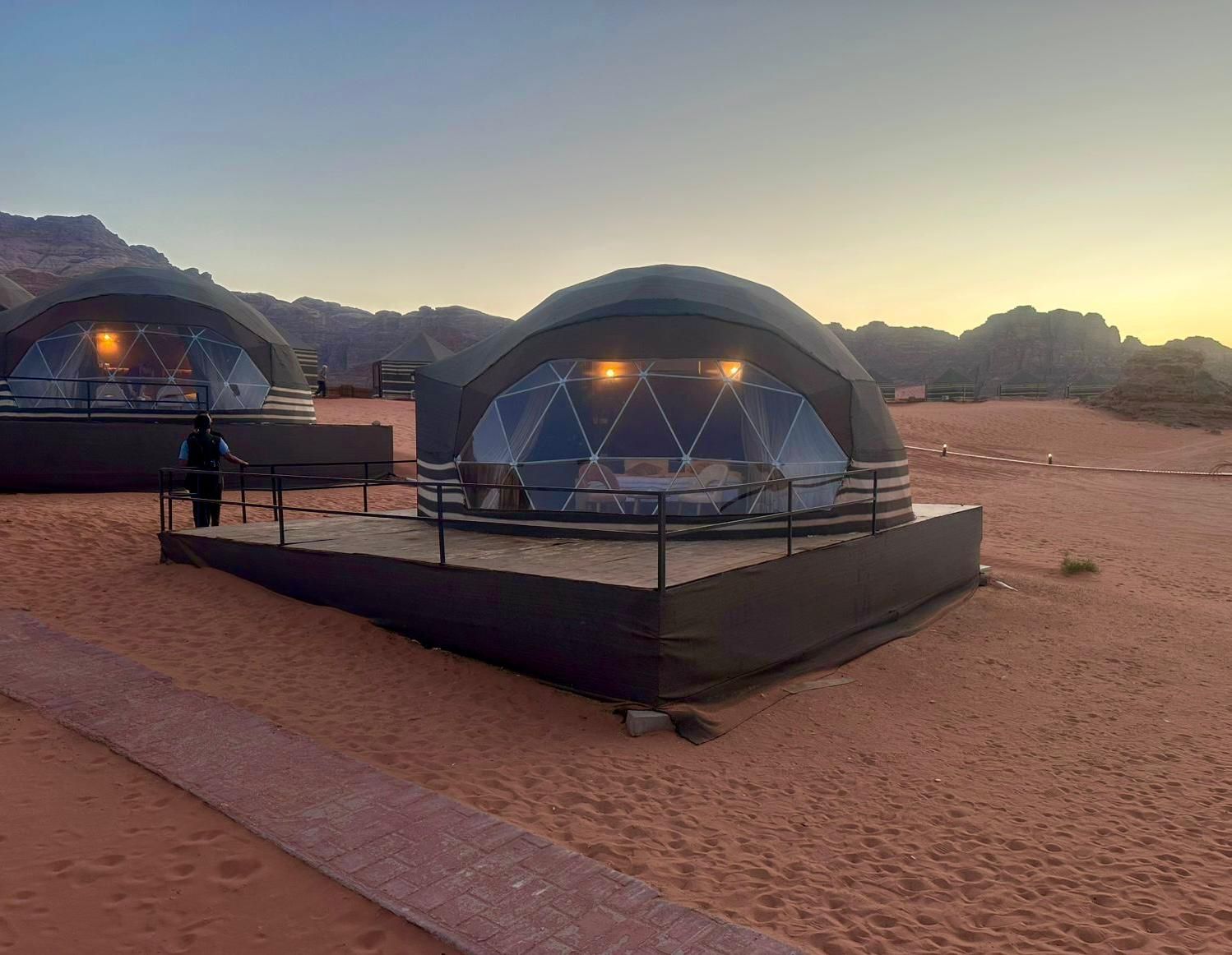 Yasmina is located within " Al Mleeh " Reserve, adjacent to the " barrah Mountain " and “ Um Eshreen Mountain “ , 200 Meters from carved rocks " Nabeatian inscriptions " Site, " Camels Farm ”, and 1200 Meters from " Lawrence Residence “